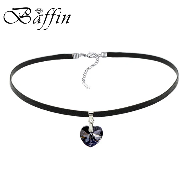 » Best Price BAFFIN Heart Pendant Choker Necklace Crystals From Swarovski Rope Leather Chain Collar For Women Party Retro Vintage Jewelry